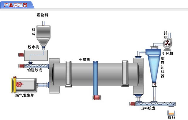 一、煤泥烘干機結構及工作原理 煤泥烘干機主要由熱源、打散裝置、帶式上料機、進料機、回轉滾筒、帶式出料機、引風機、卸料器和配電柜構成。該套設備工作原理如下:煤泥由于具有一定的粘性,在烘干過程中濕煤泥進入烘干機后分以下幾個工作區(qū):一是導料區(qū),濕煤泥進入此區(qū)與高溫熱風接觸迅速蒸發(fā)水分,物料在大導角的抄板抄動下,形不成粘結便被導入下一個工作區(qū); 二是清理區(qū),濕煤泥在此區(qū)被抄板抄抄起形成料幕狀態(tài),物料落下時易形成粘結滾筒壁現象,在此區(qū)由于設備設計有清掃裝置,清掃裝置便十分合理地清掃了內壁粘附的物料,在這個過程中,清掃裝置對于物料 團球結塊也起破碎作用,從而增加了熱交換面積,提高了干燥速率;三是傾斜揚料板區(qū),濕煤泥在此區(qū)已 呈低水分松散狀態(tài),物料在此區(qū)已不具有粘結現象,經過熱交換后物料達到所要求的水分狀態(tài),進入后 的出料區(qū);四是出料區(qū),滾筒在此區(qū)不設抄板,物料在此區(qū)滾動滑行至排料口,完成整個烘干過程。 二、主要特點 1、烘干機抗過載能力強,處理量大,燃料消耗少,干燥成本低; 2、采用順流干燥方式,煙氣與濕物料由同一側進入干燥機,可以利用高溫煙氣獲得很高的蒸發(fā)強度,烘干機溫度低,熱效率高; 3、可根據不同的物料性質改變運行參數,使物料在烘干機筒體內能夠形成穩(wěn)定的全斷面料幕,質熱交換更為充分; 4、新型給料、排料裝置,滾筒干燥機給料堵塞、不連續(xù)、不均勻和返料等現象,降低了除塵系統的負荷; 5、新型內部結構,強化了對已分散物料的清掃和熱傳導作用,消除了筒體內壁的沾粘現象,對物料水分、粘性的適應性更強; 6、烘干機實現了 “ 零水平推力 ” ,大大減少了擋托輪的磨損,筒體運轉平穩(wěn)可靠; 7、烘干機采用 “ 調心式托輪裝置 ” ,使托輪和滾圈的配合永遠呈線性接觸,從而大大降低了磨損和動力損耗; 8、可根據用戶要求控制產品粒度和水分,烘干煤泥時產品水分可達 8% 以下,粒度可控制在 8mm 以下。 三、工藝流程圖